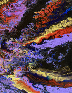 My intention is to create a Pour Painting inspired by my feelings and imagination. My abstract paintings celebrate color, form, shape, and texture. Staying in the present moment and going with the